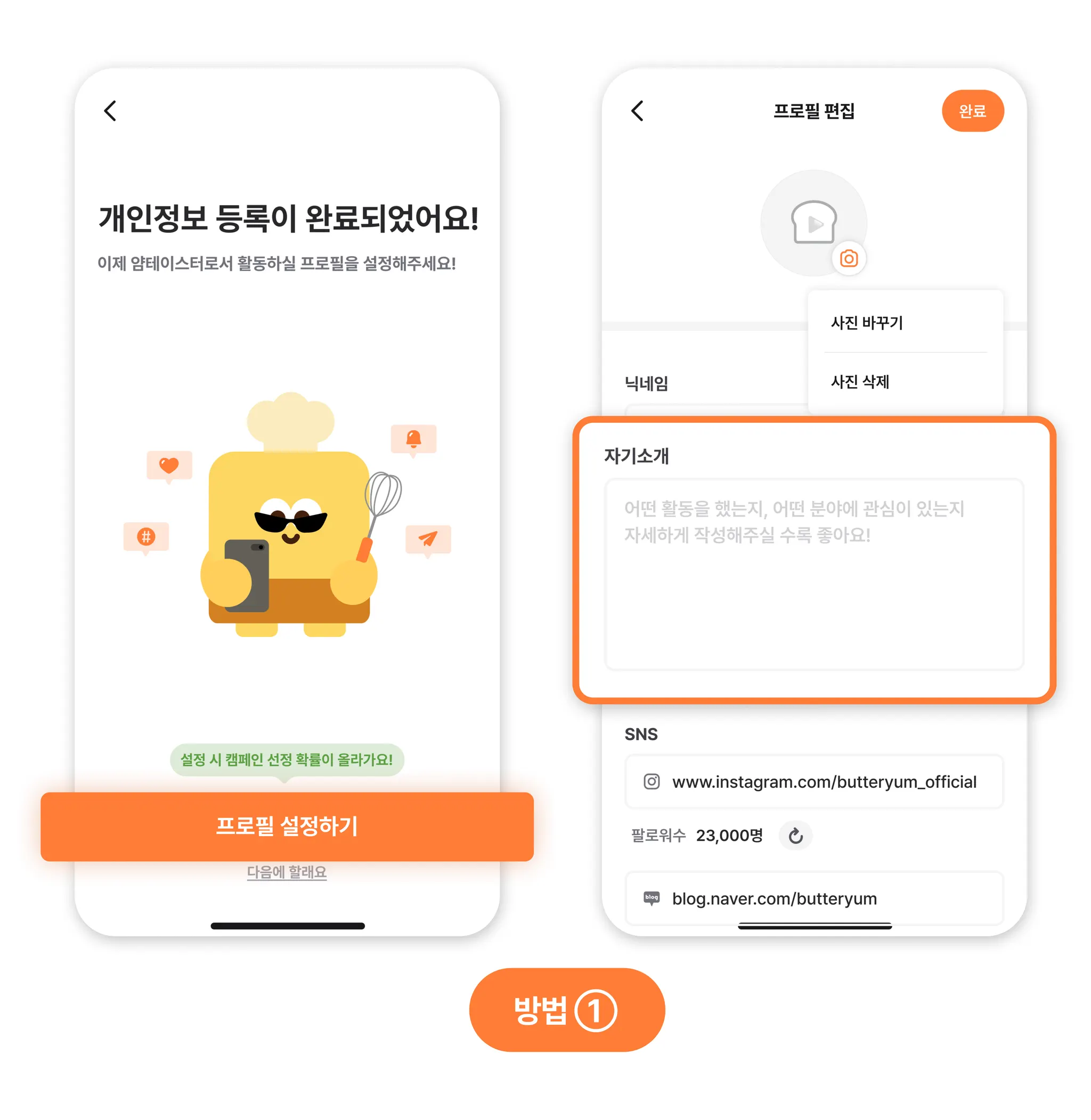 계정 전환 완료 후에 뜨는 페이지에서 ‘프로필 설정하기’ 버튼 클릭