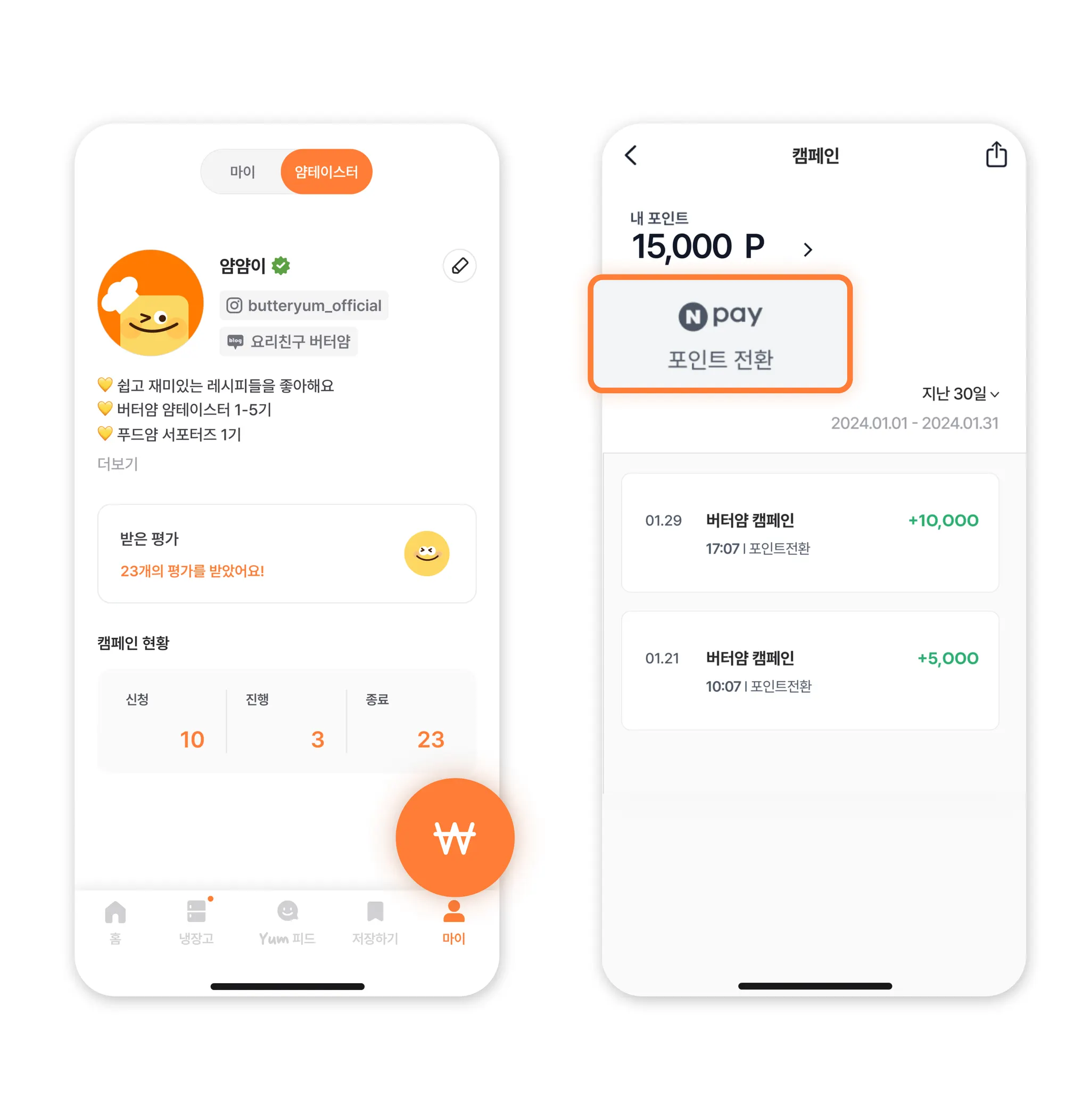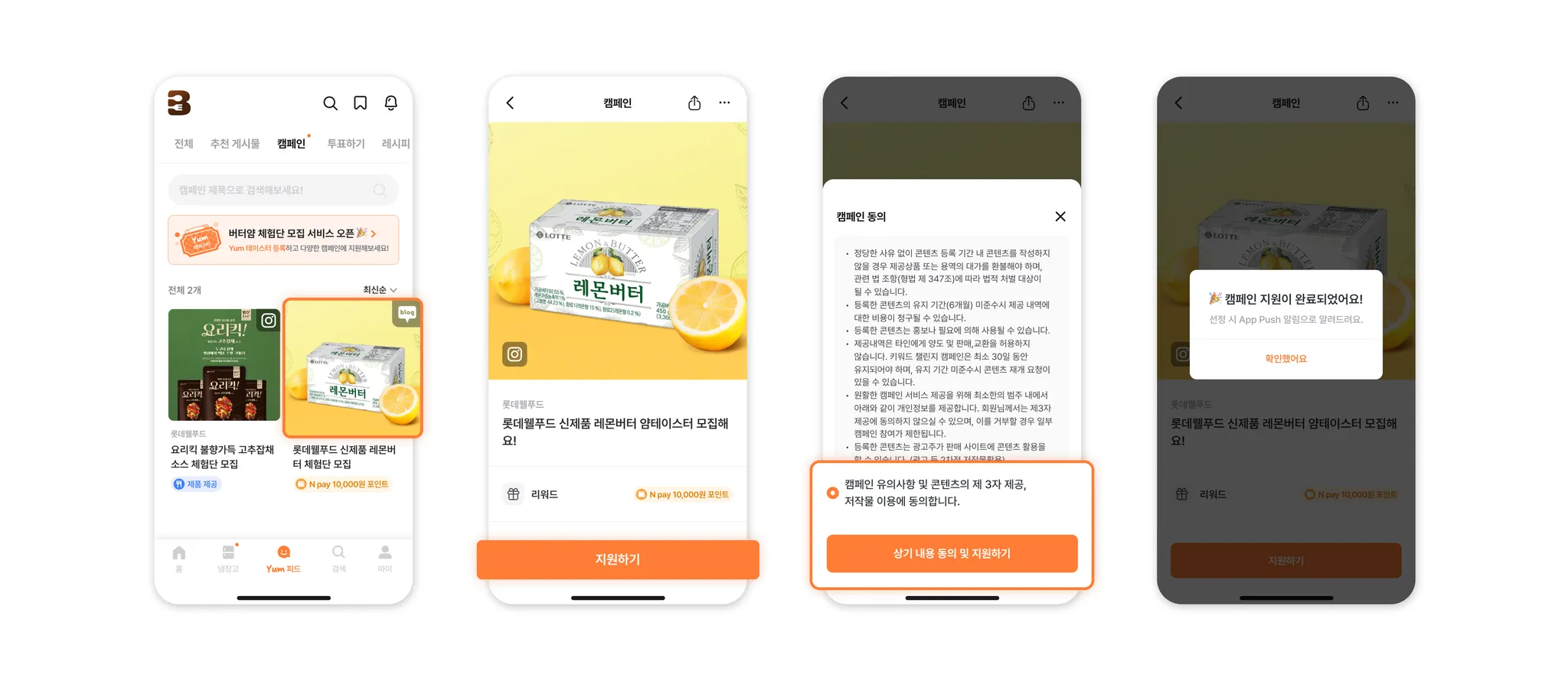 버터얌 앱 진입 후, Yum 피드에 접속하여 캠페인 메뉴를 클릭