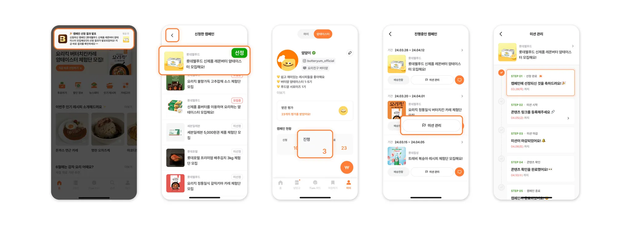캠페인 현황에서 진행 버튼 클릭 후, 미션관리 접속하여 선정된 캠페인 확인