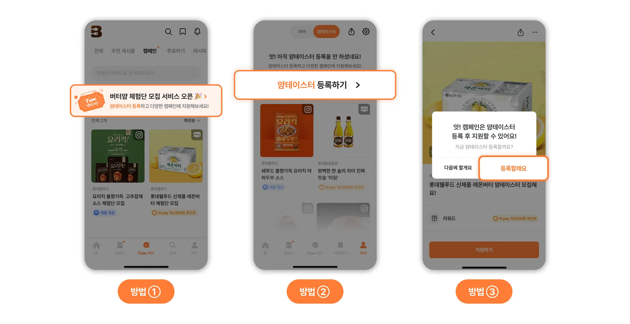 얌테이스터 등록 팝업 창이 뜨면 ‘등록할래요’ 버튼 클릭